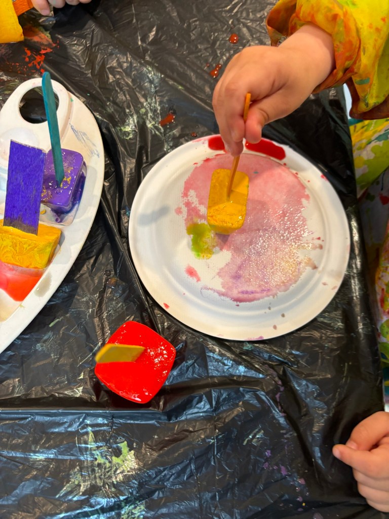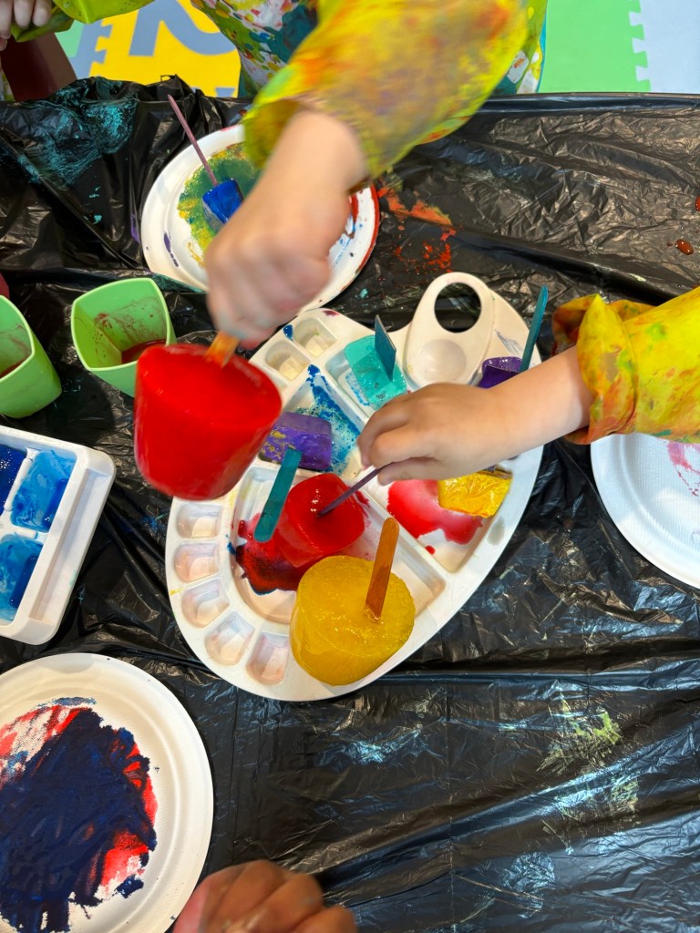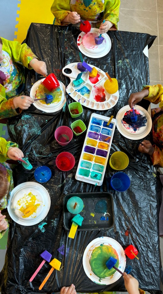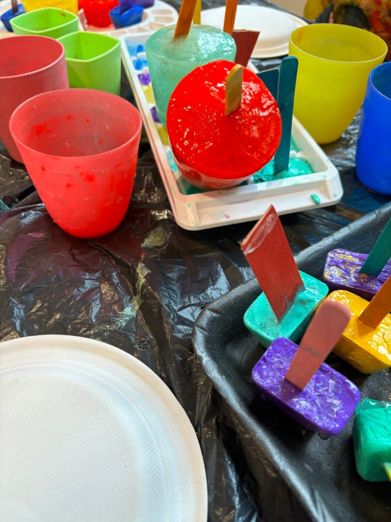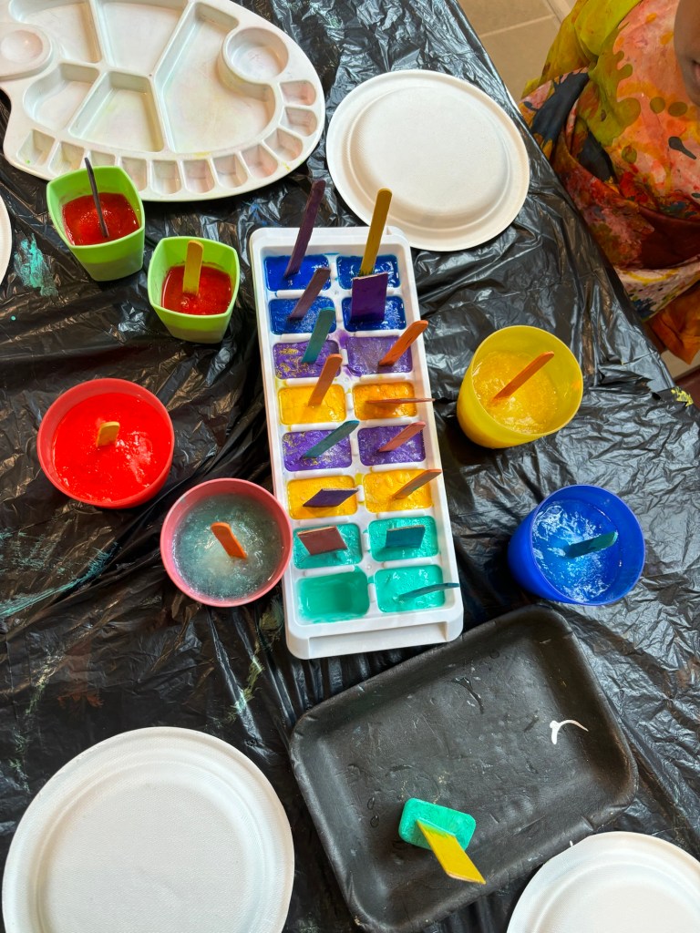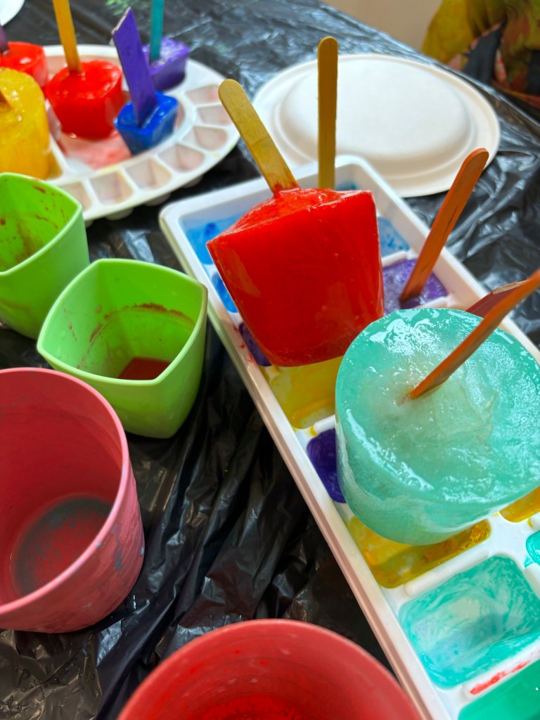 Ice painting is a creative activity where instead of using a paintbrush, we use coloured ice cubes to paint.