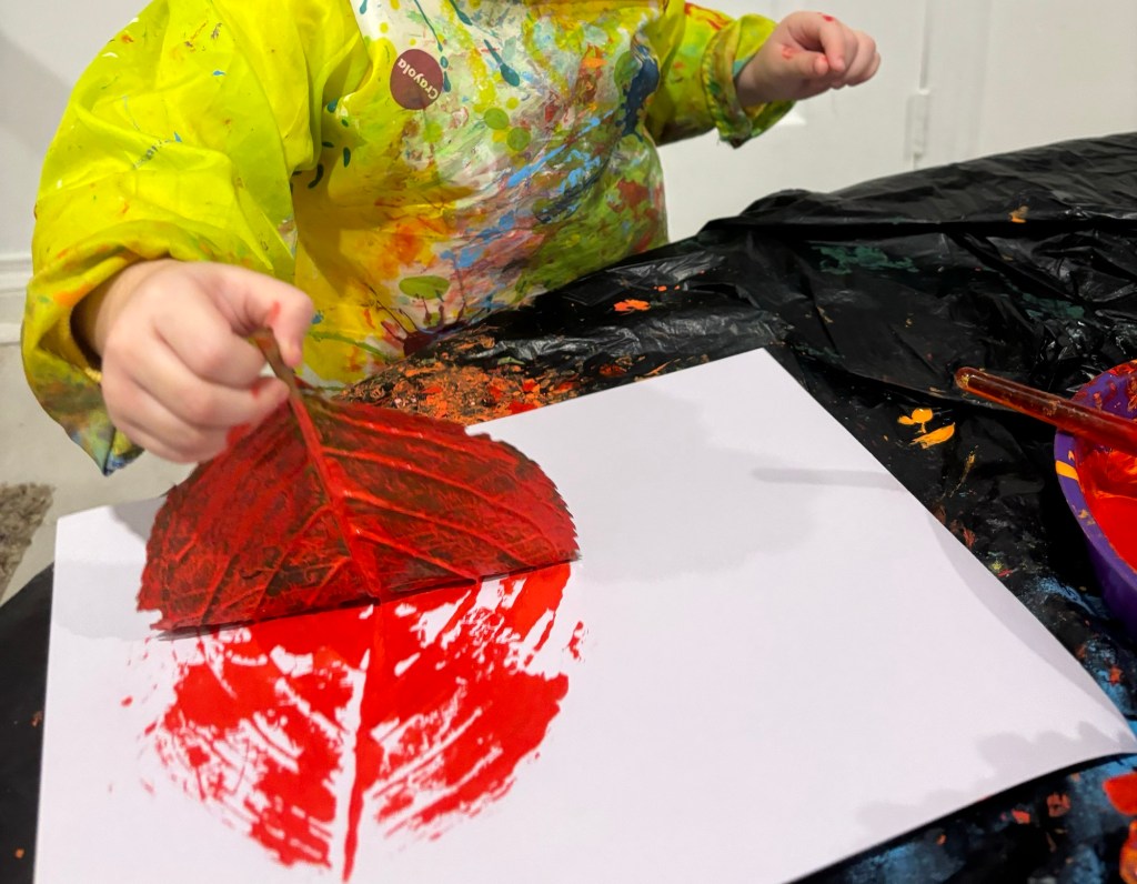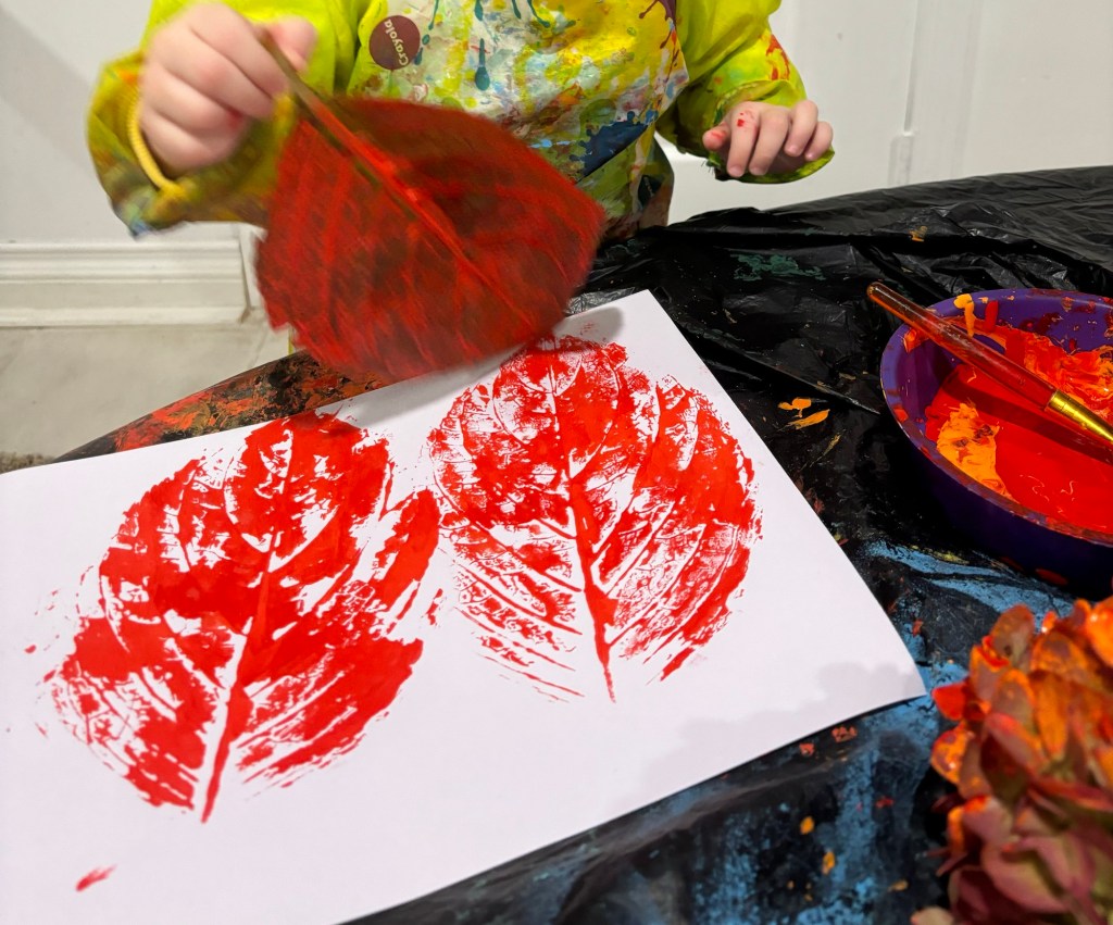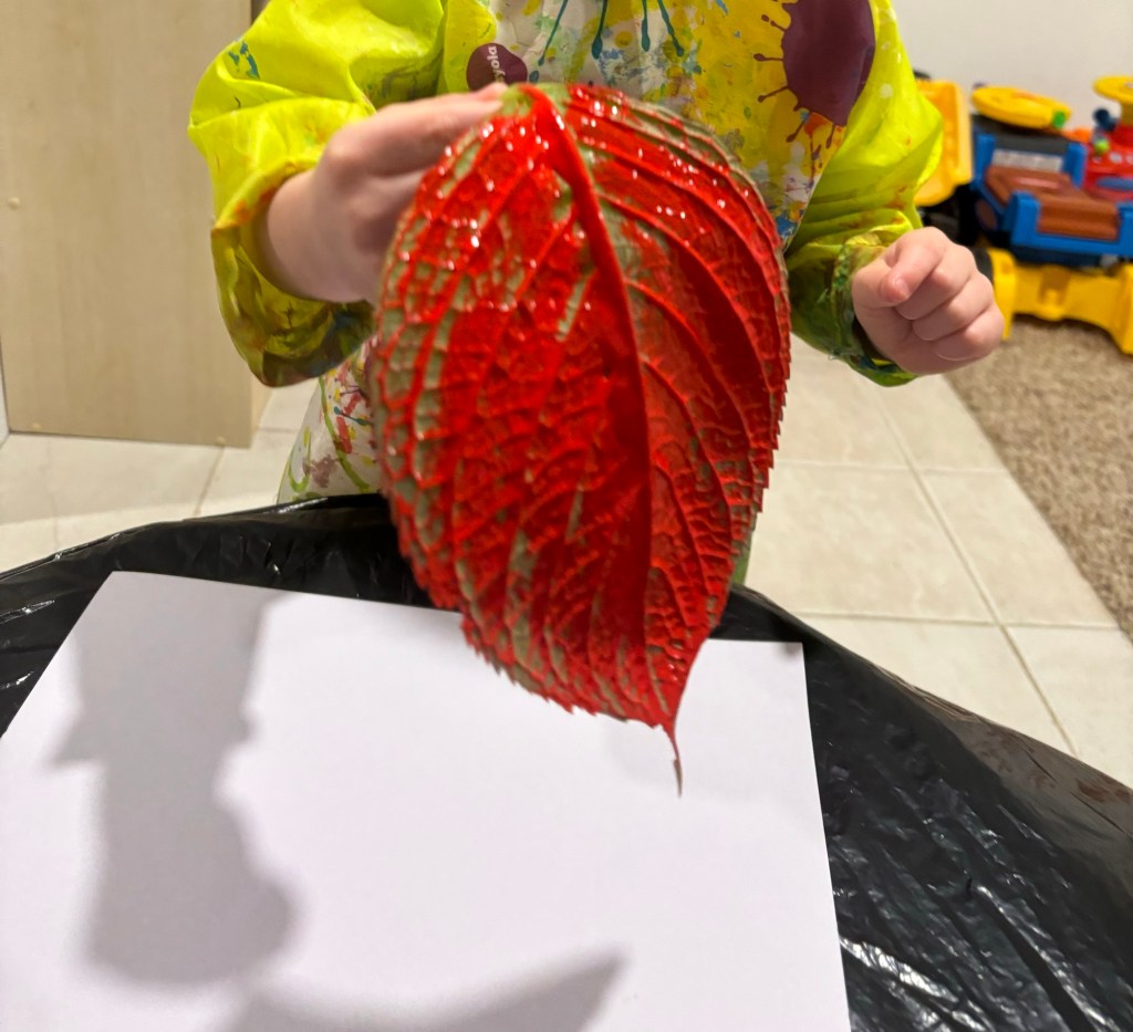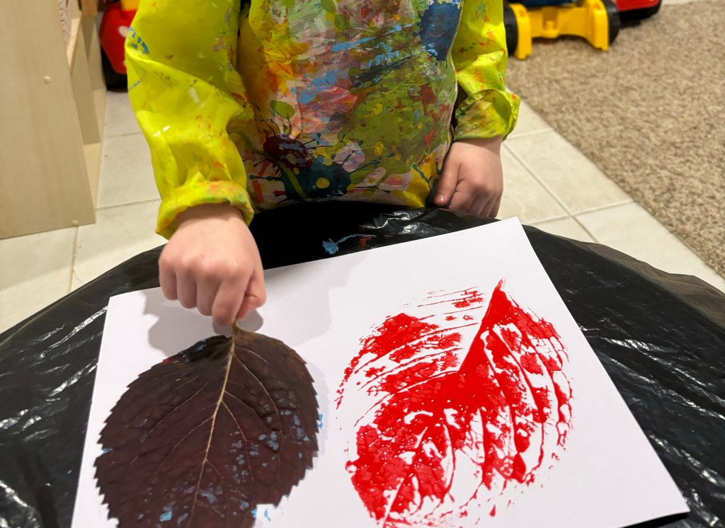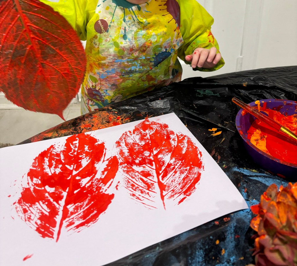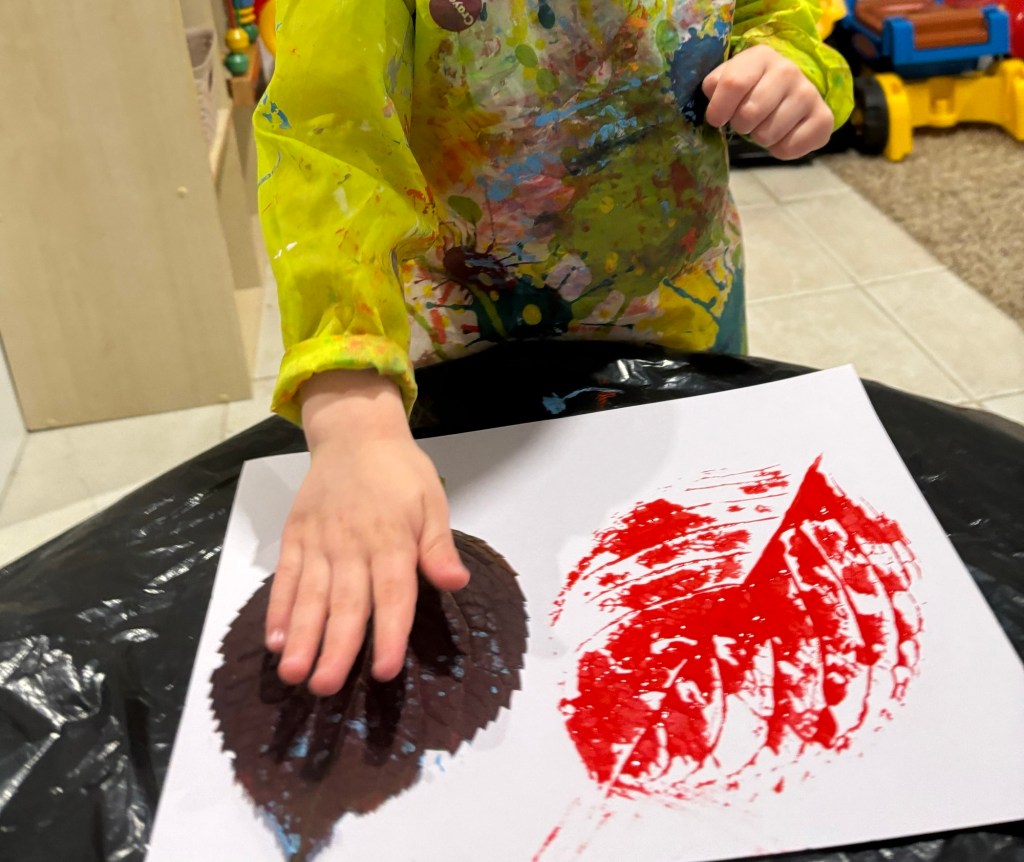 The children really enjoyed exploring autumn colours—red, yellow, green, and brown. We painted with paints and created prints by painting autumn leaves and pressing them onto paper.