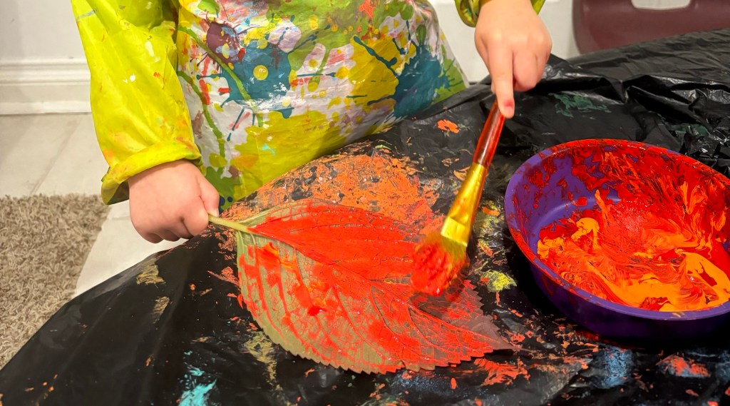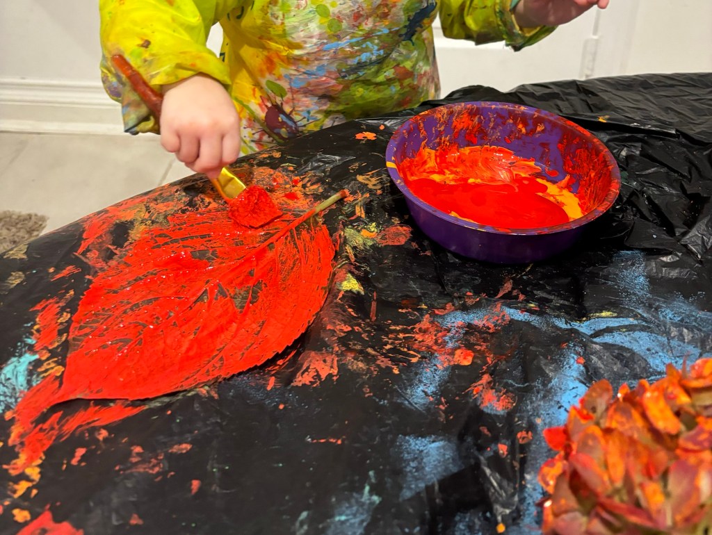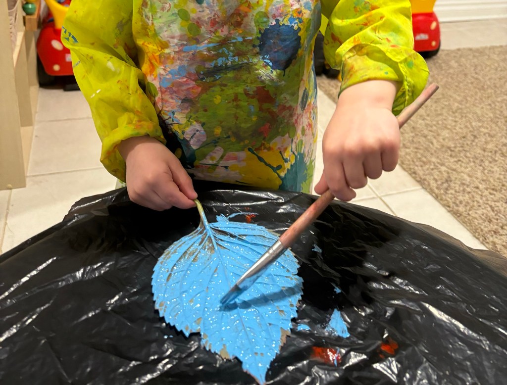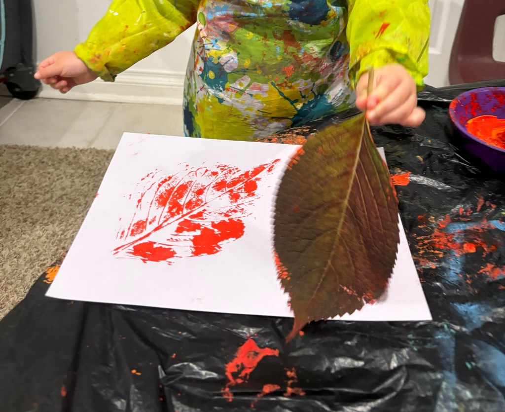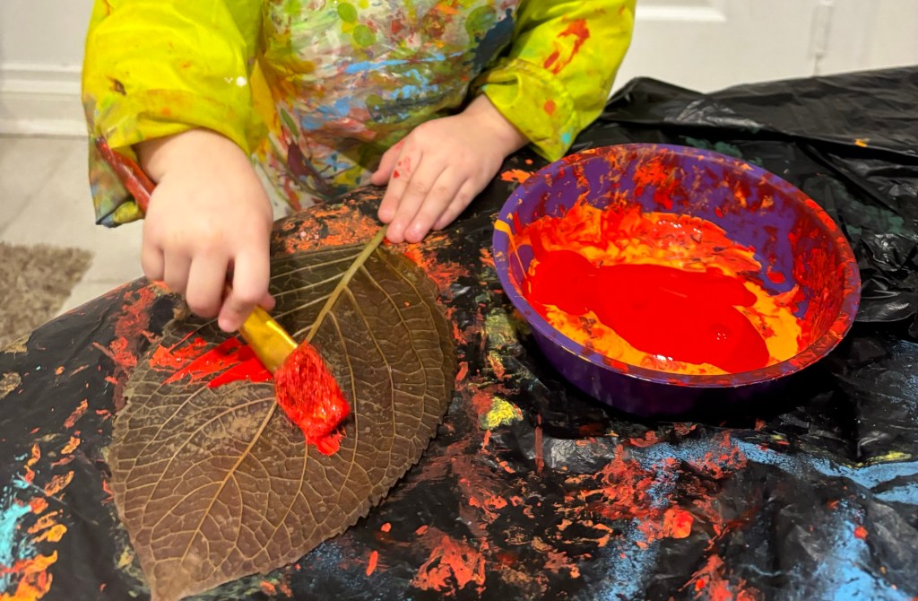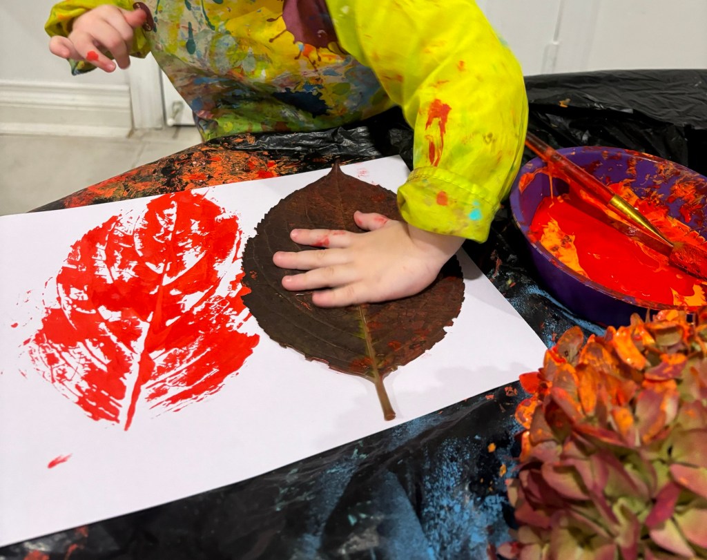 The children really enjoyed exploring autumn colours—red, yellow, green, and brown. We painted with paints and created prints by painting autumn leaves and pressing them onto paper.