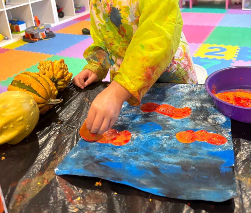 We are painting pumpkins.