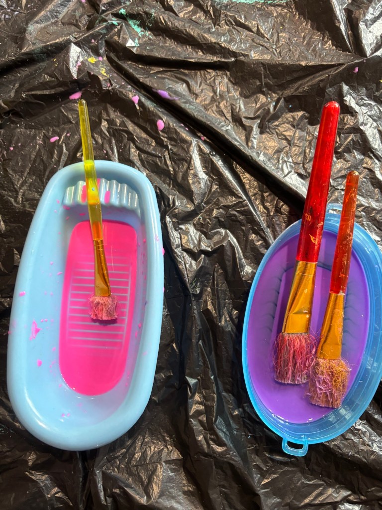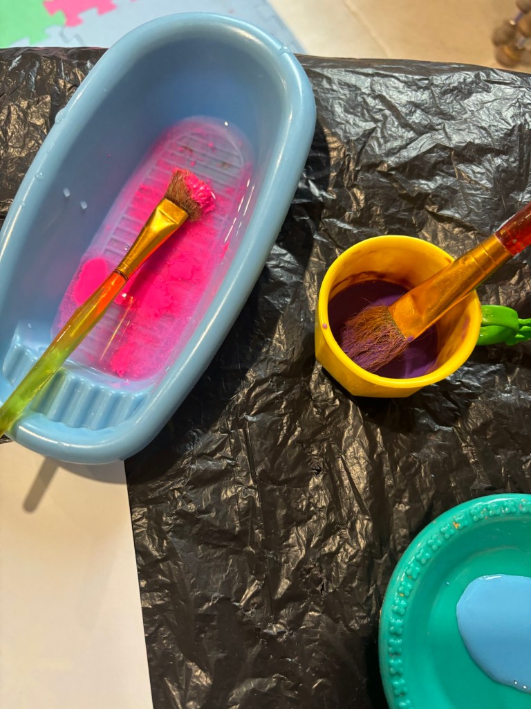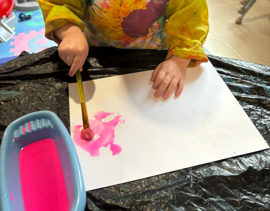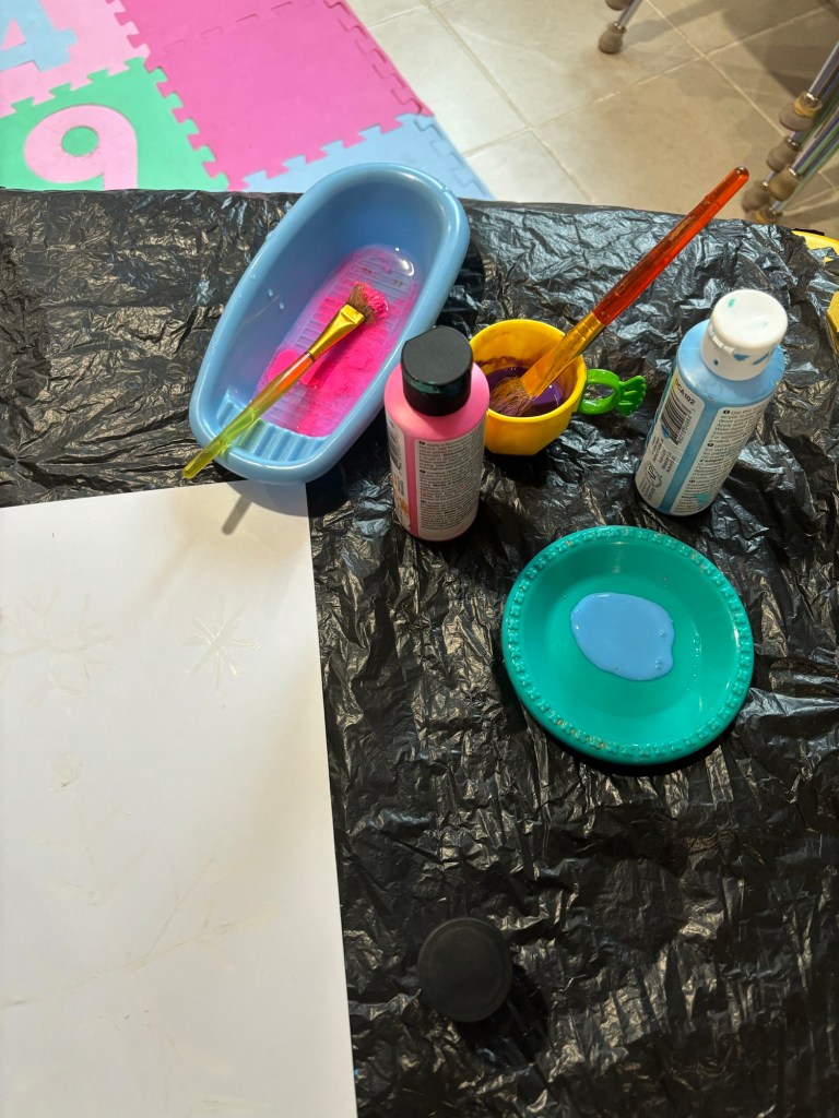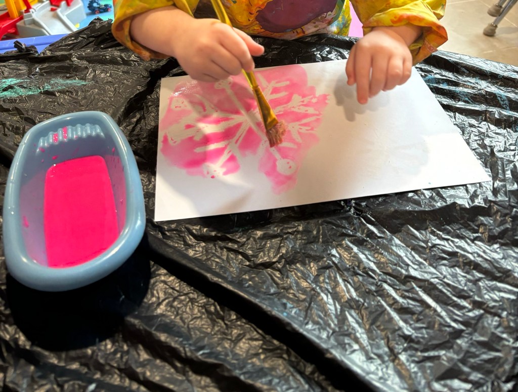 Today, we had an art class, and the children painted beautiful snowflakes with watercolors.
